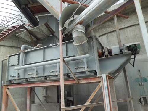 在裝有攪拌軸、葉片攪拌箱體底部,裝備帶有透氣層的充氣箱。充氣箱由羅茨風機鼓入高壓空氣、物料進入攪拌箱后,受攪拌箱底部充氣箱的氣化作用而流態(tài)化,之后由攪拌箱中攪拌軸葉片的作用而充氣攪拌,由于出料位置在攪拌箱的上部,經(jīng)攪拌后的物料從出料口溢出。出料口以下的物料則與后續(xù)的進入攪拌箱內(nèi)的物料再進行充分攪拌后經(jīng)出料口溢出。由于攪拌箱內(nèi)物料充分流態(tài)化,加上物料的溢流式結(jié)構(gòu),物料中的渣子將沉積在攪拌箱底部。待混料機工作到一定時間需停機時,從攪拌箱側(cè)面下部的清渣口清出。