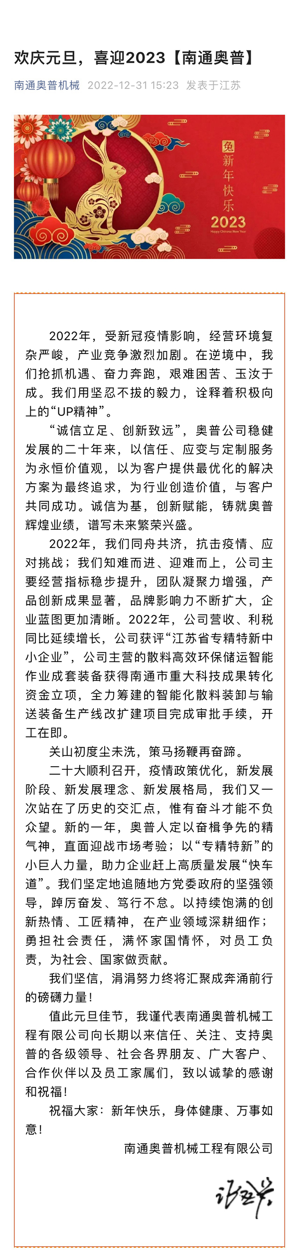 - 南通奧普機(jī)械工程有限公司2023年度總結(jié)表彰暨2024年迎新年會(huì)精彩上演