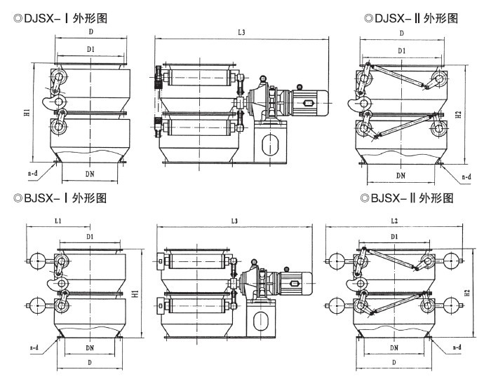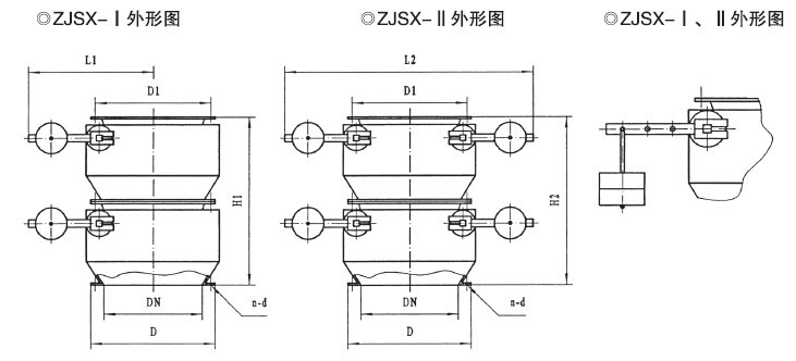 鎖氣翻板卸灰閥為上下交替開閉,自動復位機構(gòu)。分為:z為重錘自動復位機構(gòu),具有運轉(zhuǎn)平穩(wěn)、節(jié)能,卸灰量大、小可調(diào),卸灰、鎖氣可靠之功能。C為吊錘自動復位機構(gòu),具有占地面積省、節(jié)能,卸灰調(diào)節(jié)方便,卸灰、鎖氣可靠之功能。B為凸輪、連桿傳動,重量自動復位機構(gòu);D為凸輪連桿傳動,彈簧自動復位機構(gòu),結(jié)構(gòu)緊湊、設計合理、運轉(zhuǎn)平穩(wěn),卸灰、鎖氣可靠。是各種無粘度的固體粉料,小于Φ10mm的顆粒料,晶體料,團狀料,給、卸料工況的理想設備。Ⅰ型為單板卸料,Ⅱ型為雙板卸料。