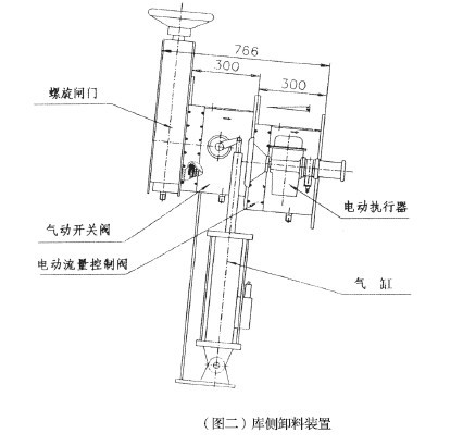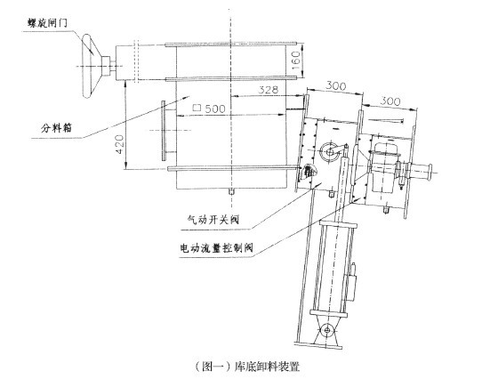 庫底卸料裝置由庫底螺旋閥、庫底分料箱、氣動開關(guān)閥、電動流量控制閥及卸料溜子組成(見圖一),用于水泥生料粉或水泥庫底卸料。庫底卸料裝置能自動調(diào)節(jié)卸料流量且均勻,其結(jié)構(gòu)合理,操作維護簡單方便,可設(shè)三個下料口,用戶也可選用庫側(cè)卸料裝置(見圖二)。